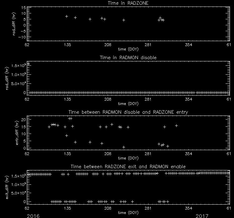 - RADMON - Radmon is disabled for radiation zone (as commanded based on OFLS model, for comparison with actual radiation levels).