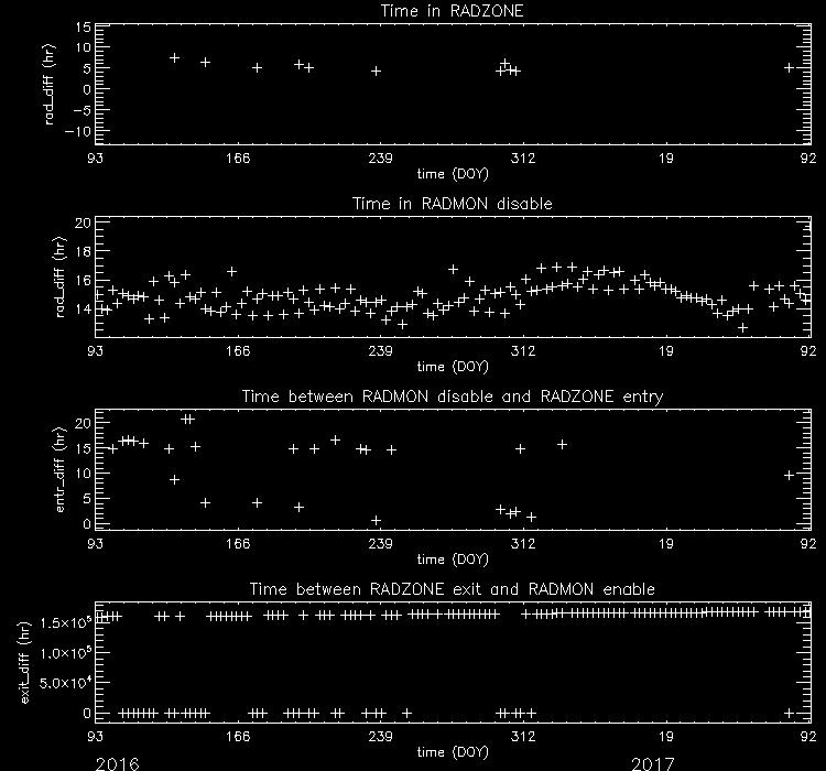 - RADMON - Radmon is disabled for radiation zone (as commanded based on OFLS model, for comparison with actual radiation levels).