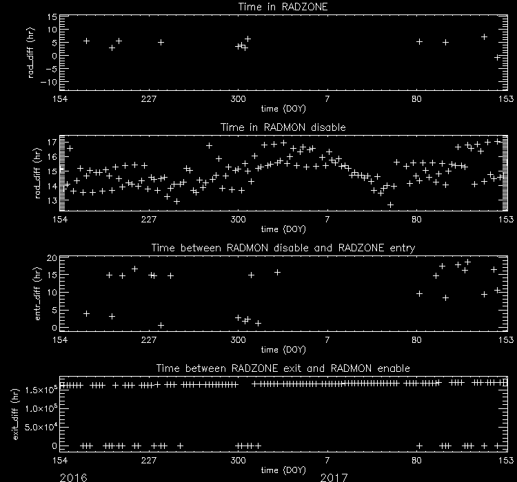 - RADMON - Radmon is disabled for radiation zone (as commanded based on OFLS model, for comparison with actual radiation levels).