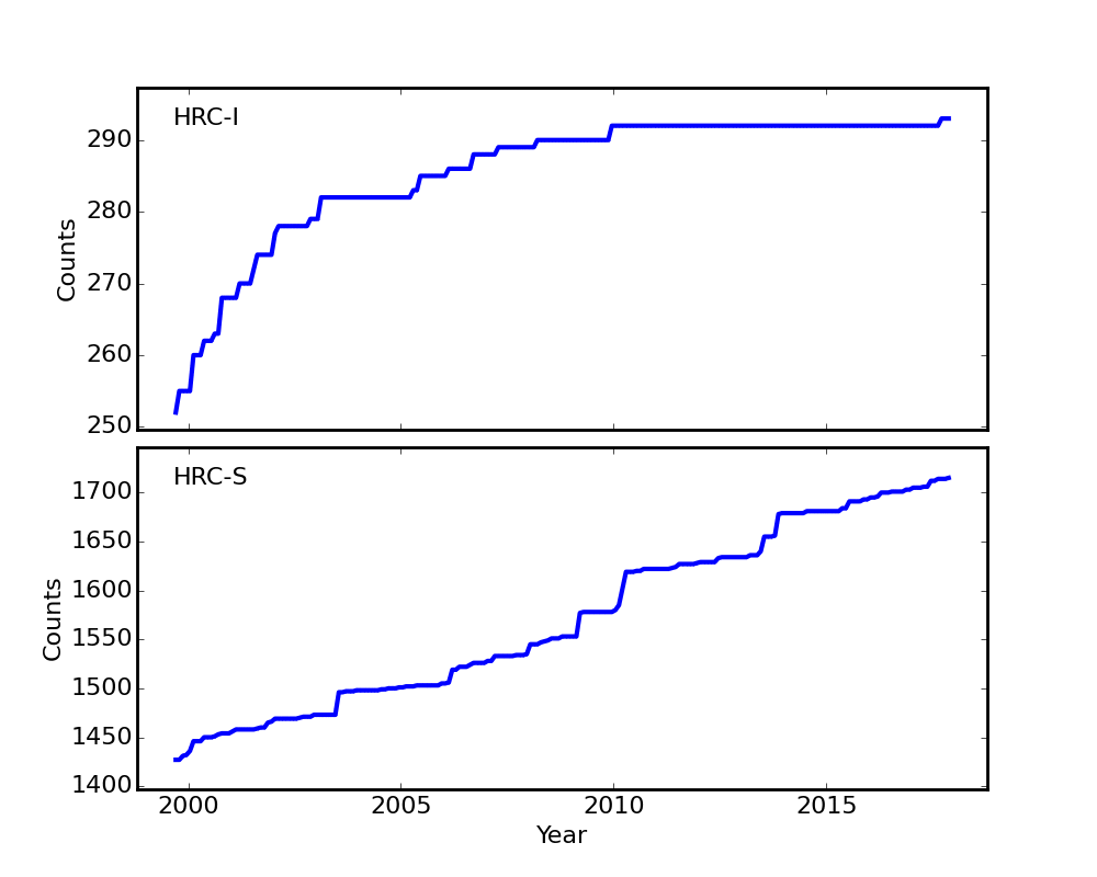 IMAGE NPIX MEAN STDDEV MIN MAX HRCS_08_1999_11_2017.fits 16777216 16.679 29.853 0.000 1715.000