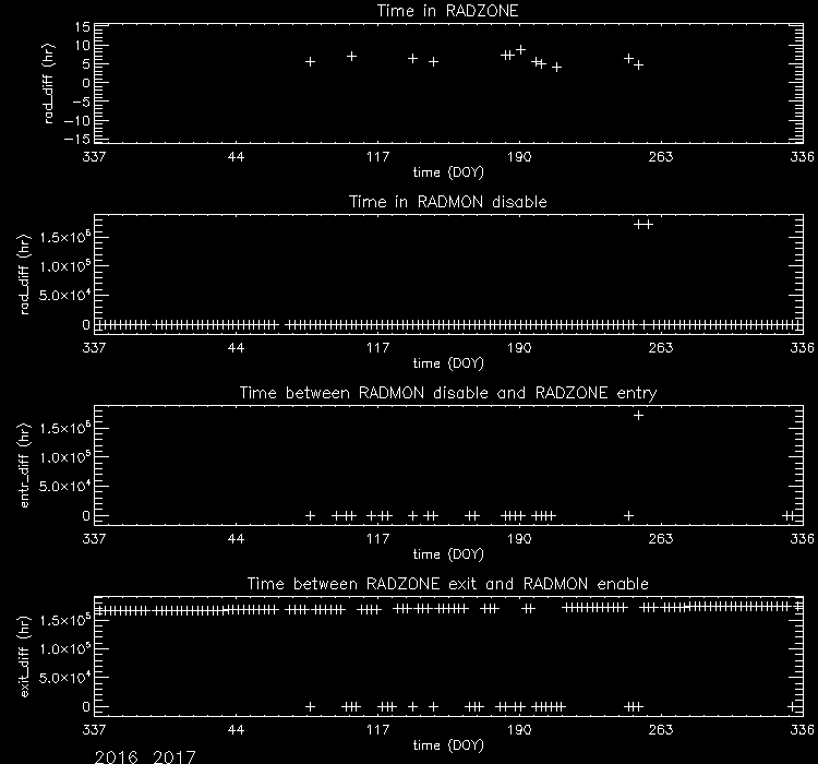 - RADMON - Radmon is disabled for radiation zone (as commanded based on OFLS model, for comparison with actual radiation levels).