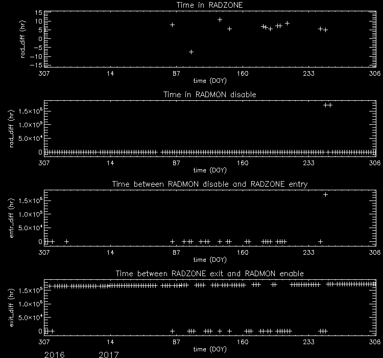 - RADMON - Radmon is disabled for radiation zone (as commanded based on OFLS model, for comparison with actual radiation levels).