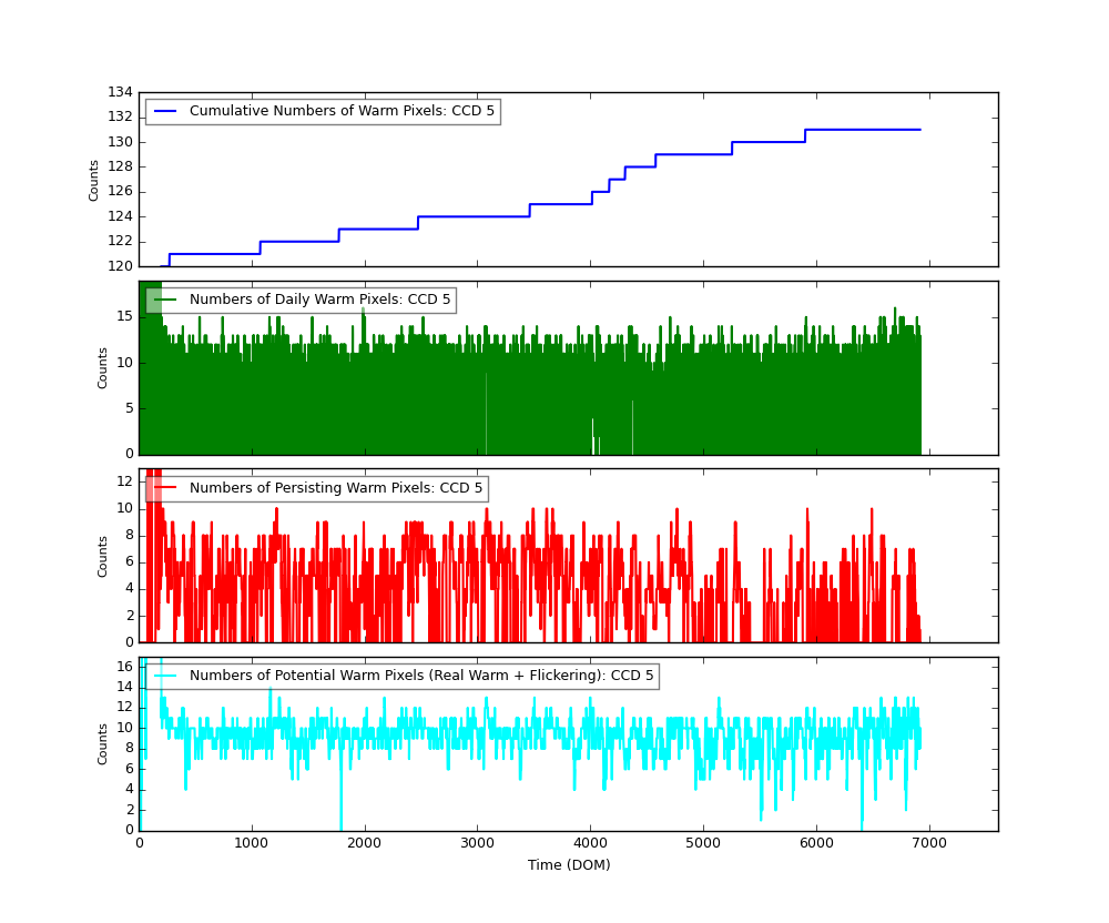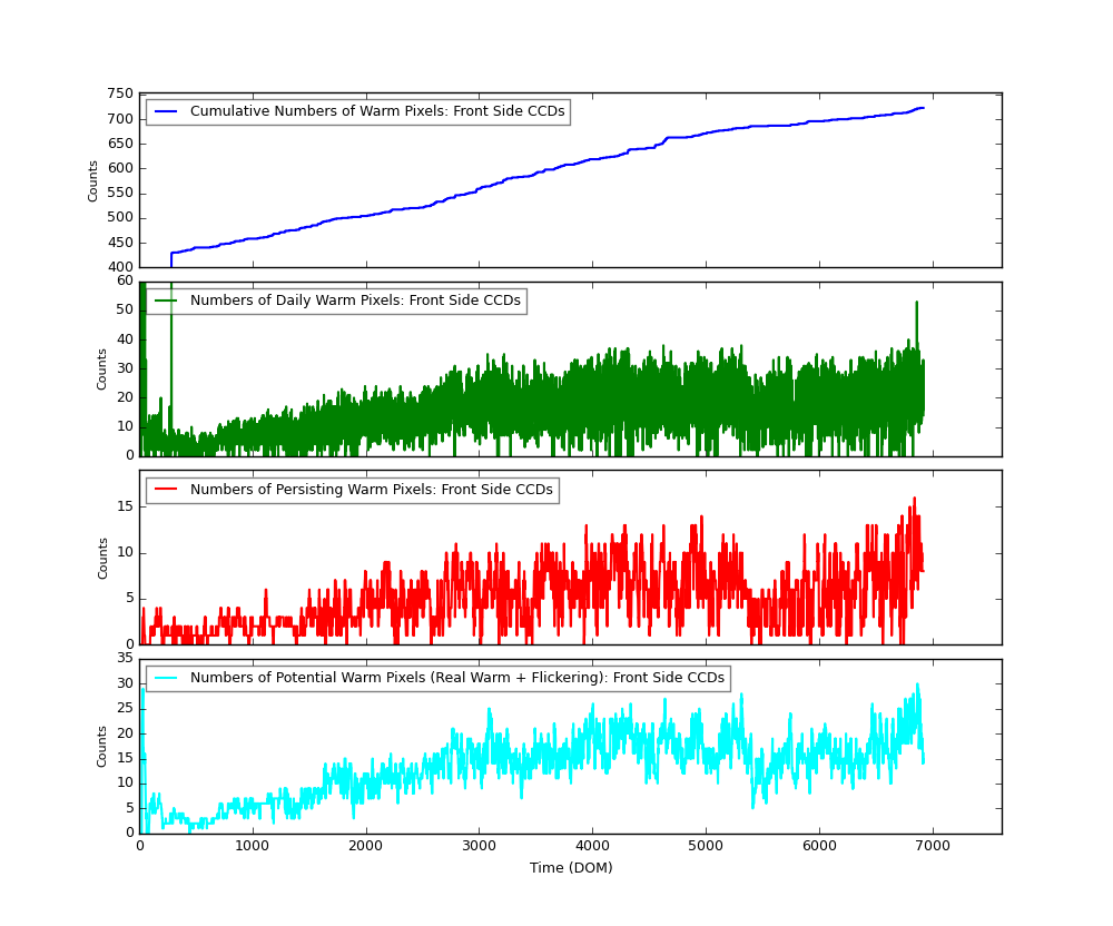 The plots below were generated with a new warm pixel finding script. Please see Acis Bad Pixel Page for details.