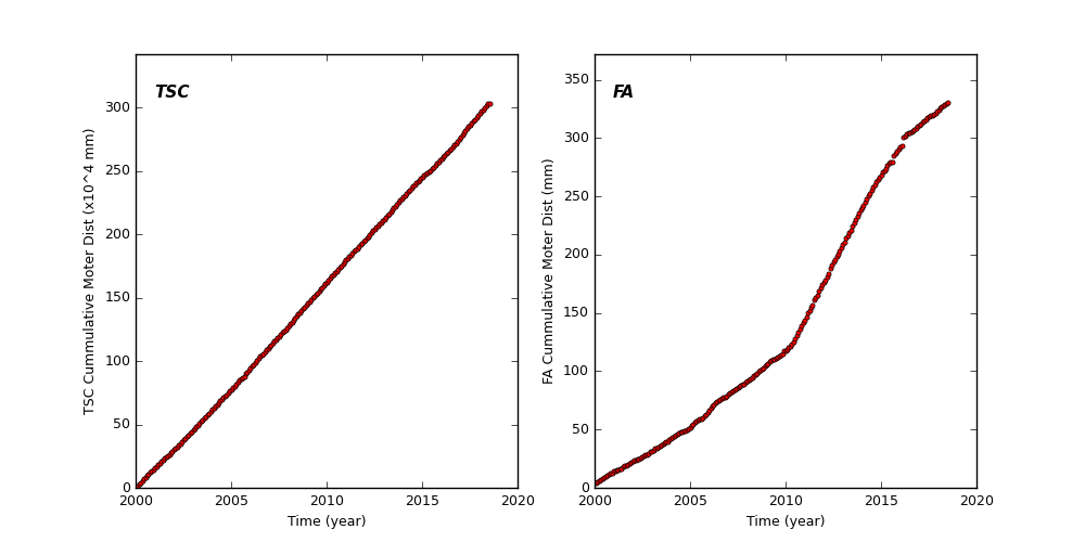 TSC and FA Cummulative Moter Distance