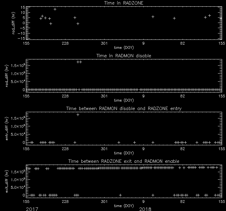 - RADMON - Radmon is disabled for radiation zone (as commanded based on OFLS model, for comparison with actual radiation levels).