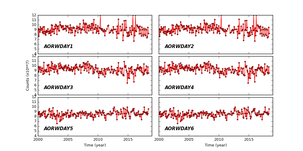Please check more detail plots at Telemetered Photon Dose Trend page.