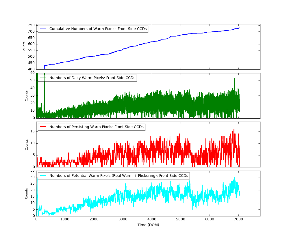 The plots below were generated with a new warm pixel finding script. Please see Acis Bad Pixel Page for details.