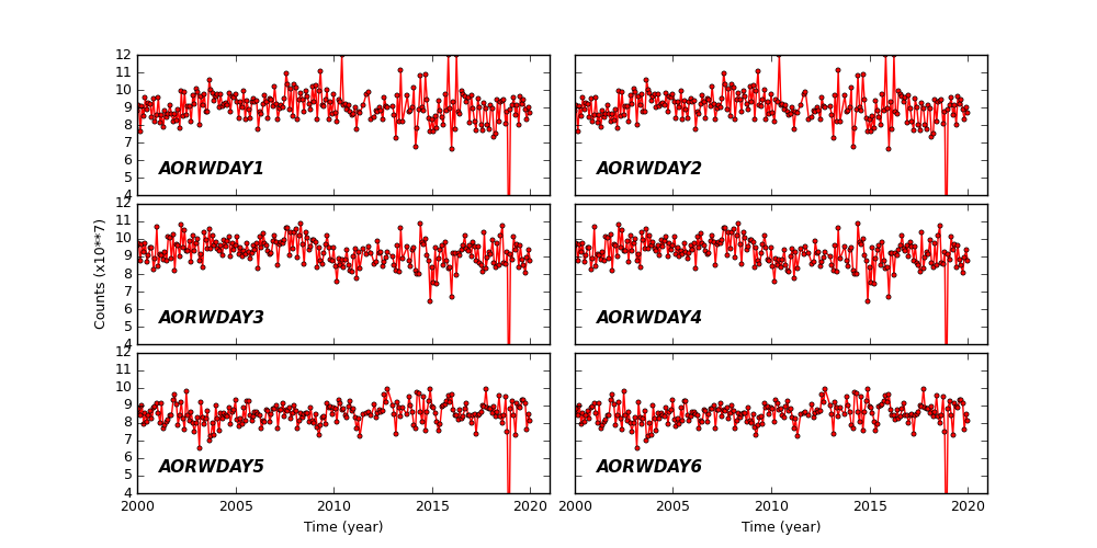 Please check more detail plots at Telemetered Photon Dose Trend page.