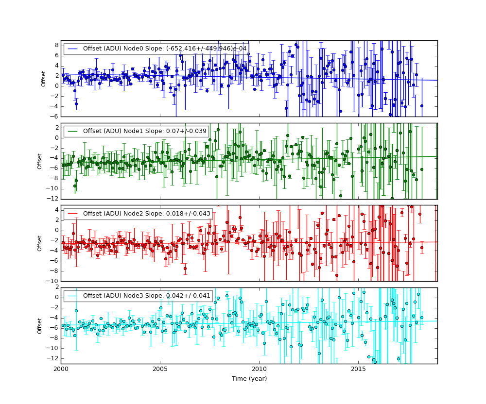 The following plots show CCD3 and CCD5 gains and offset trends.