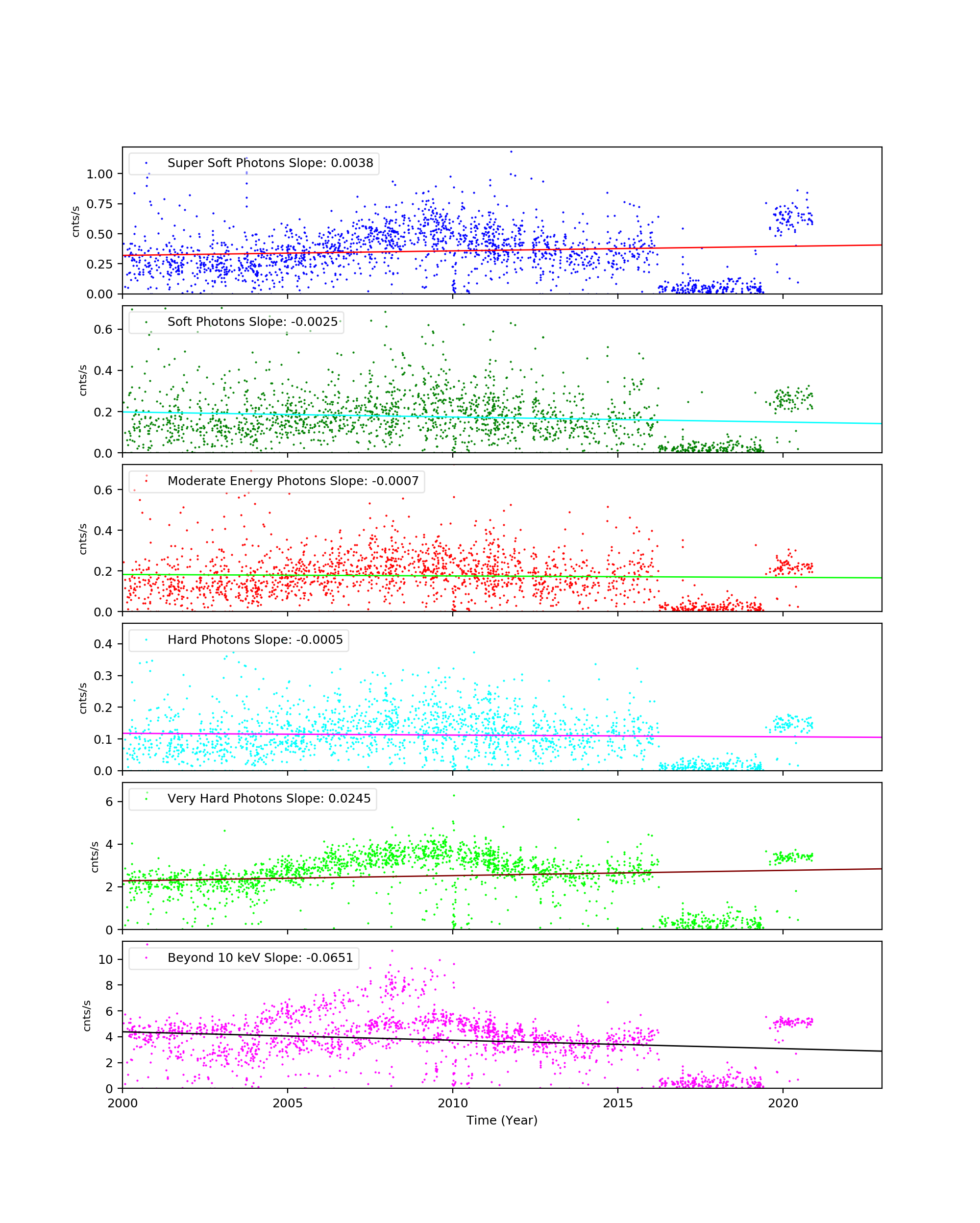 - For observations with high data drop rates (e.g., Crab nebula, Cas A), we corrected the observations by adding events.