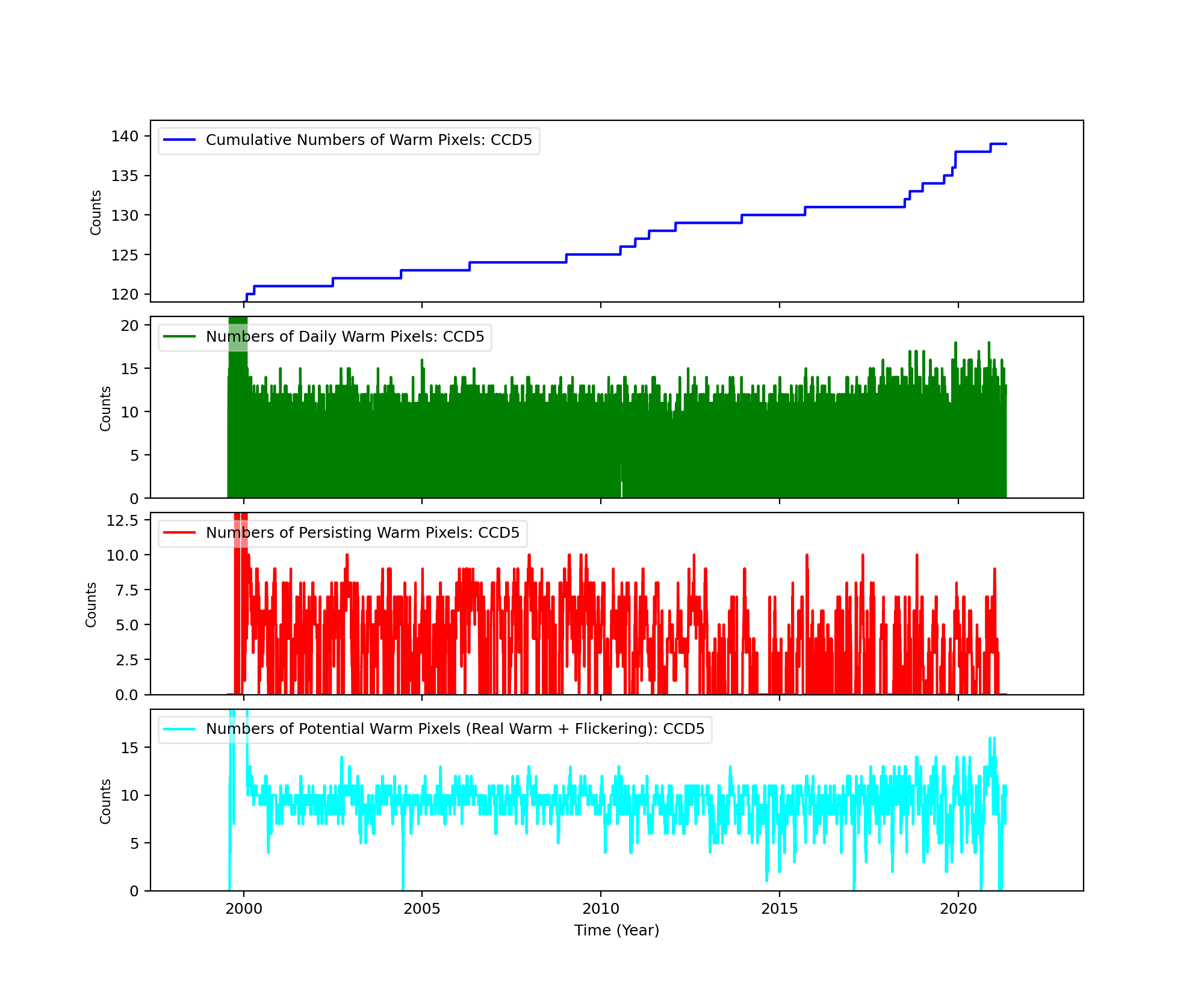 The plots below were generated with a new warm pixel finding script. Please see Acis Bad Pixel Page for details.