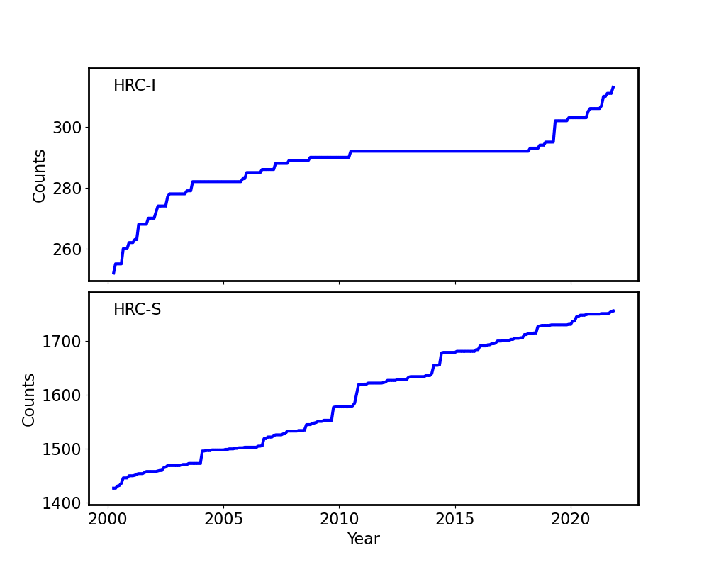 IMAGE NPIX MEAN STDDEV MIN MAX HRCS_08_1999_04_2021.fits 16777216 19.930 35.362 0.000 1756.000