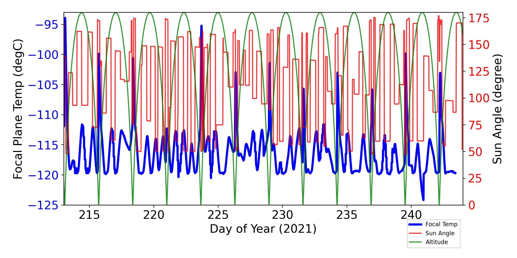 Focal Plane Temperature, Sun Angle and Altitude