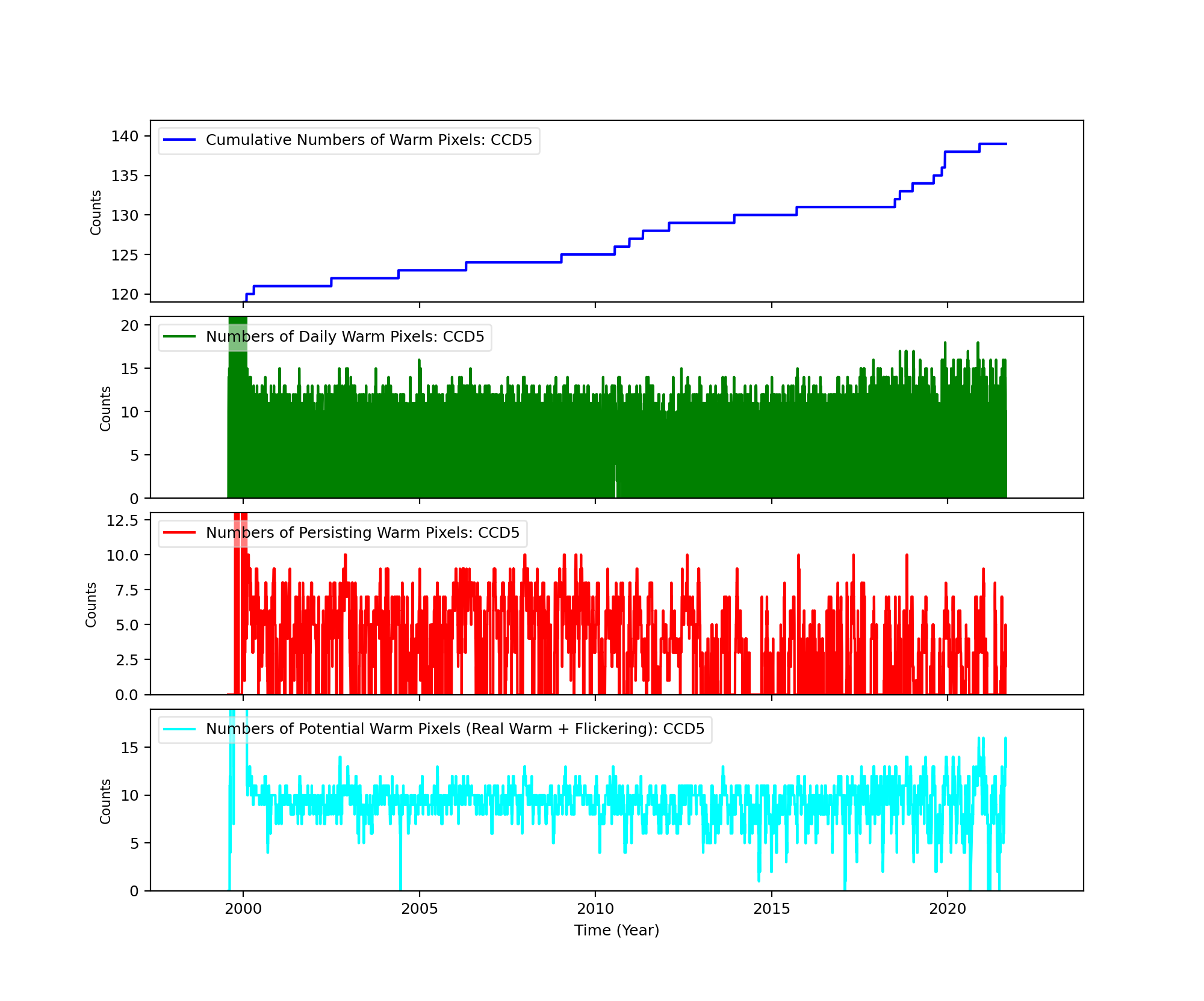The plots below were generated with a new warm pixel finding script. Please see Acis Bad Pixel Page for details.