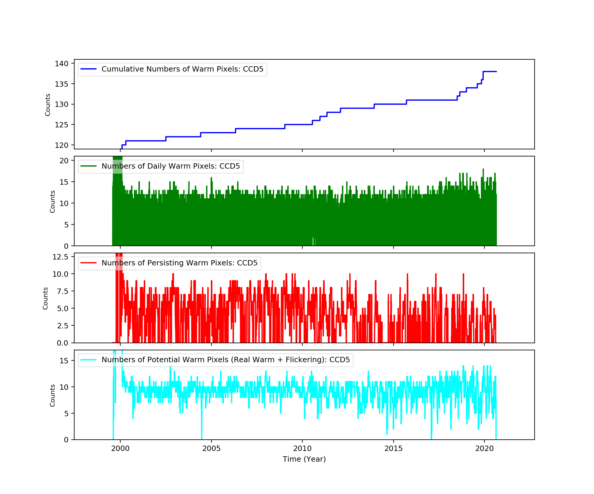 The plots below were generated with a new warm pixel finding script. Please see Acis Bad Pixel Page for details.