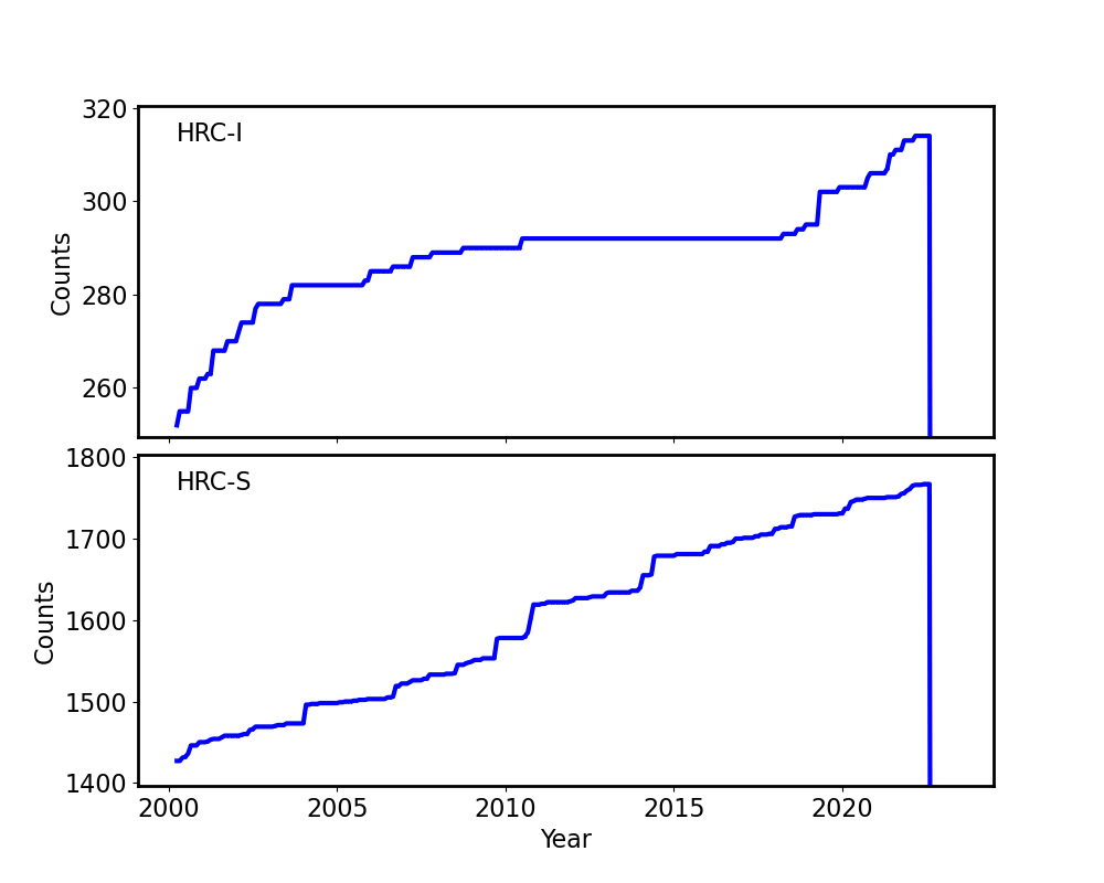 IMAGE NPIX MEAN STDDEV MIN MAX HRCS_08_1999_04_2023.fits 16777216 na na na na