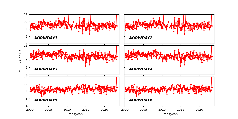 Please check more detail plots at Telemetered Photon Dose Trend page.