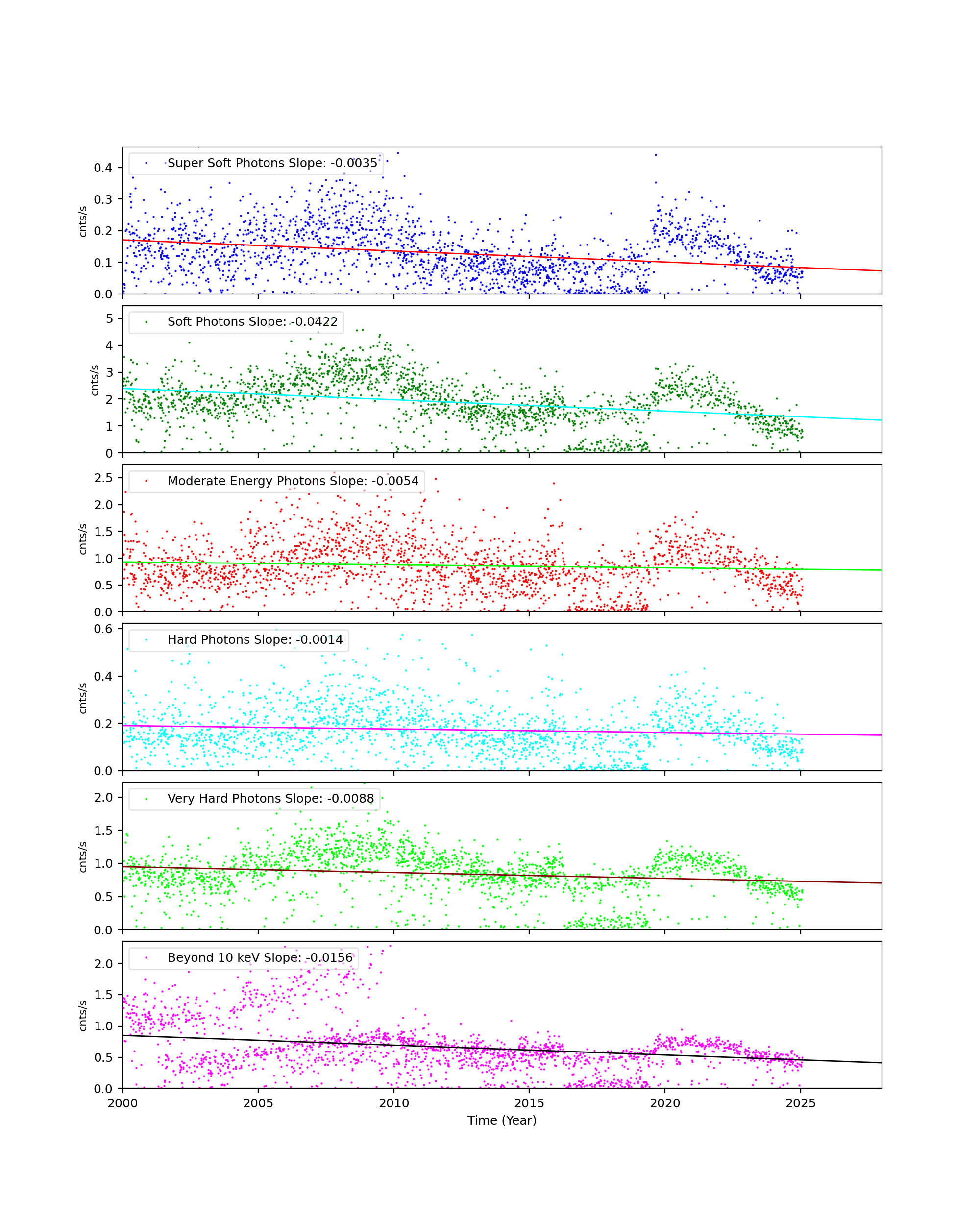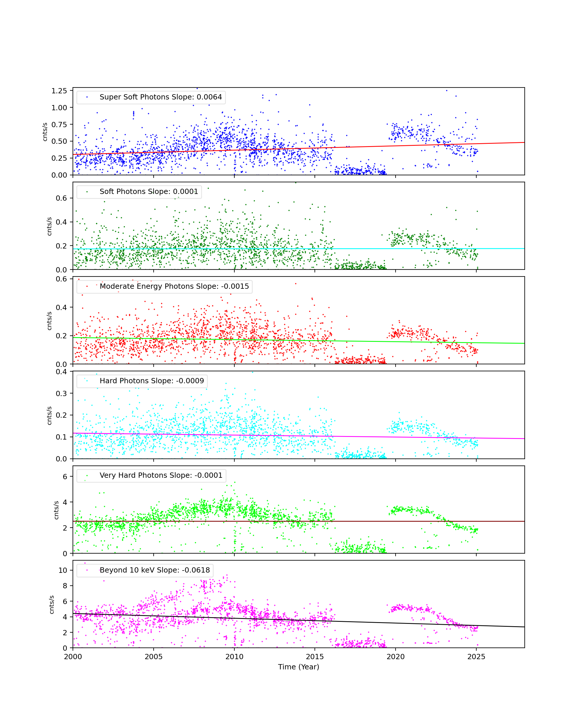 - For observations with high data drop rates (e.g., Crab nebula, Cas A), we corrected the observations by adding events.