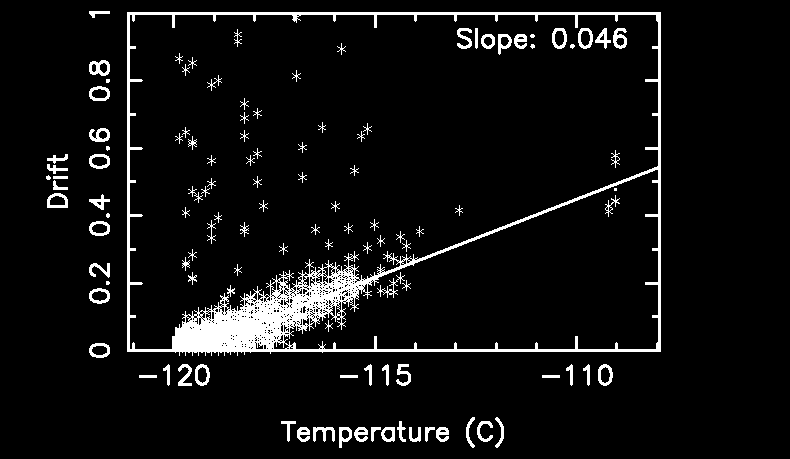 where T is the focal plane temperature in C. Since we assume that there is no correction at the focal plane temperature at -119.7 C, we subtract -119.7 from the focal plane temperature when fits the line.